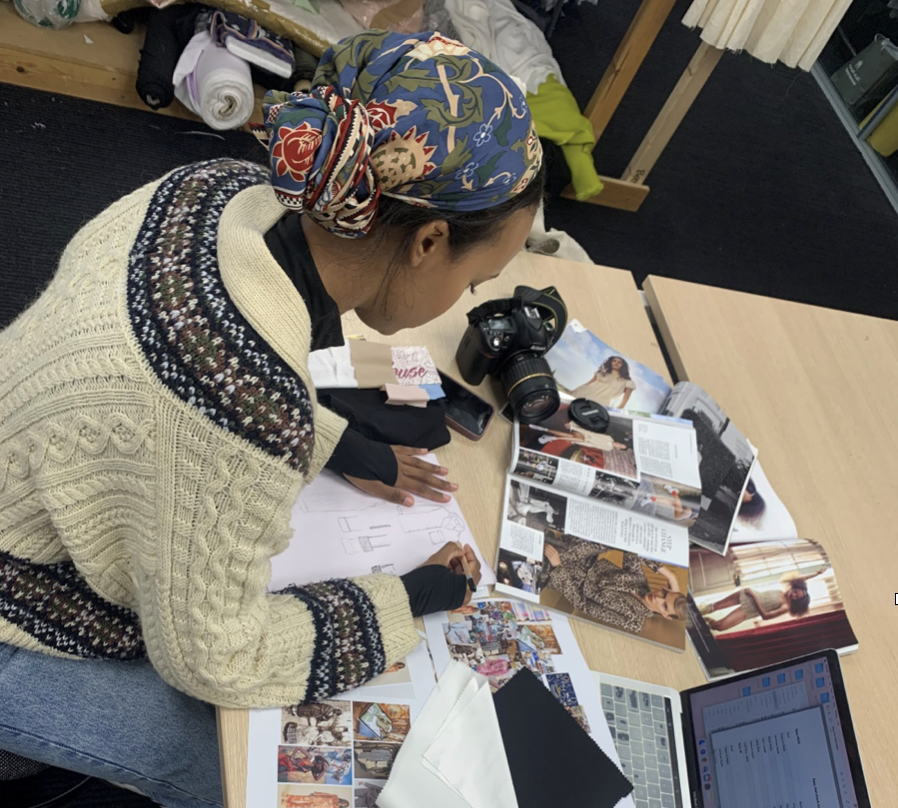 Under the guidance of FTA tutor Jo Bean, Kadija learned the technical foundations of garment construction. Drawing on her Somali heritage for inspiration in both prints and silhouettes, she began to conceptualise a sleepwear line made from high-quality, precious fabrics. The fusion of her graphic design background and cultural identity gives her brand a strong aesthetic voice, even though the name for her label is still to be finalised.